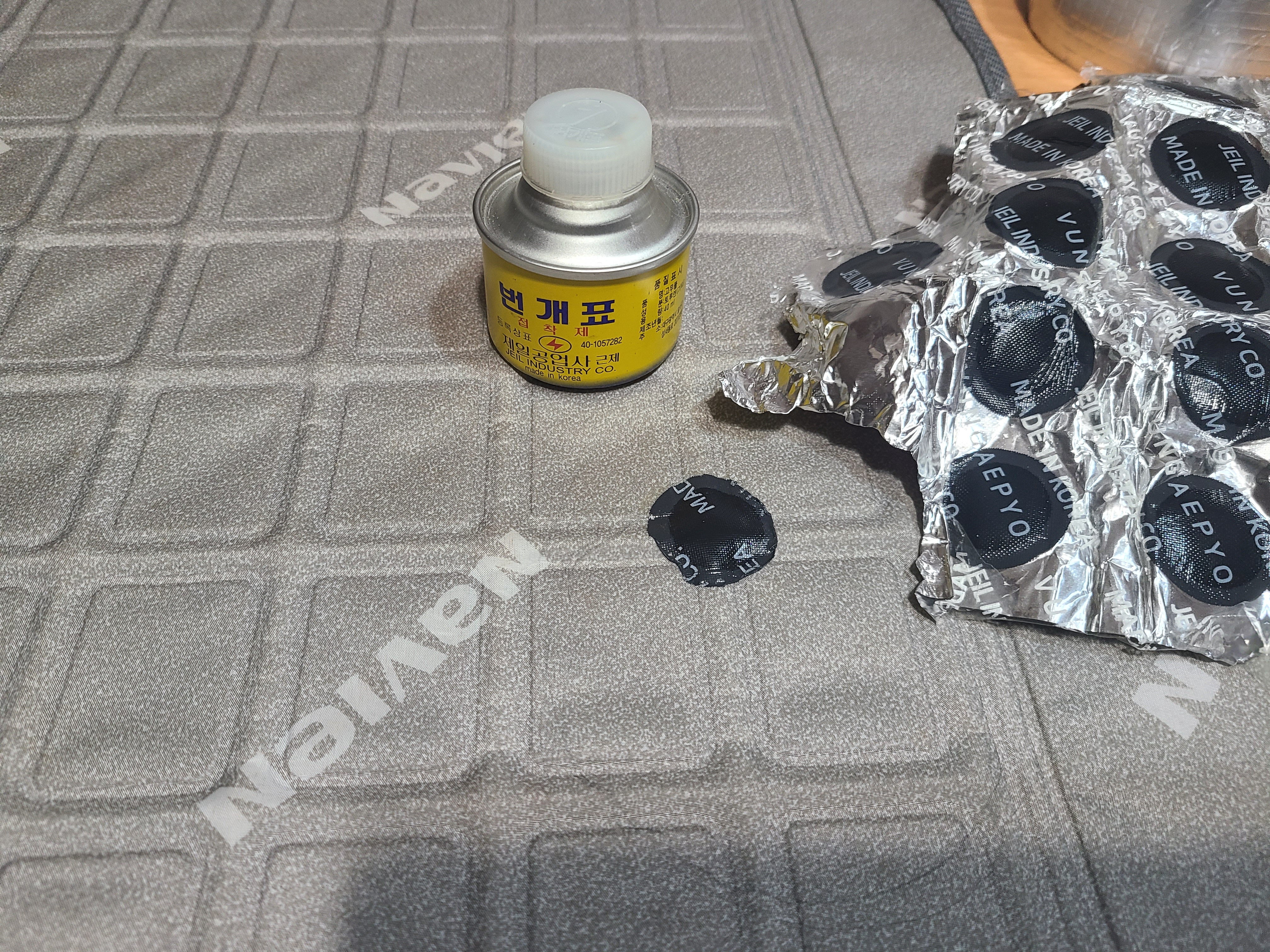 자전거 튜브 펑크 수리하는 패치로 붙였습니다.