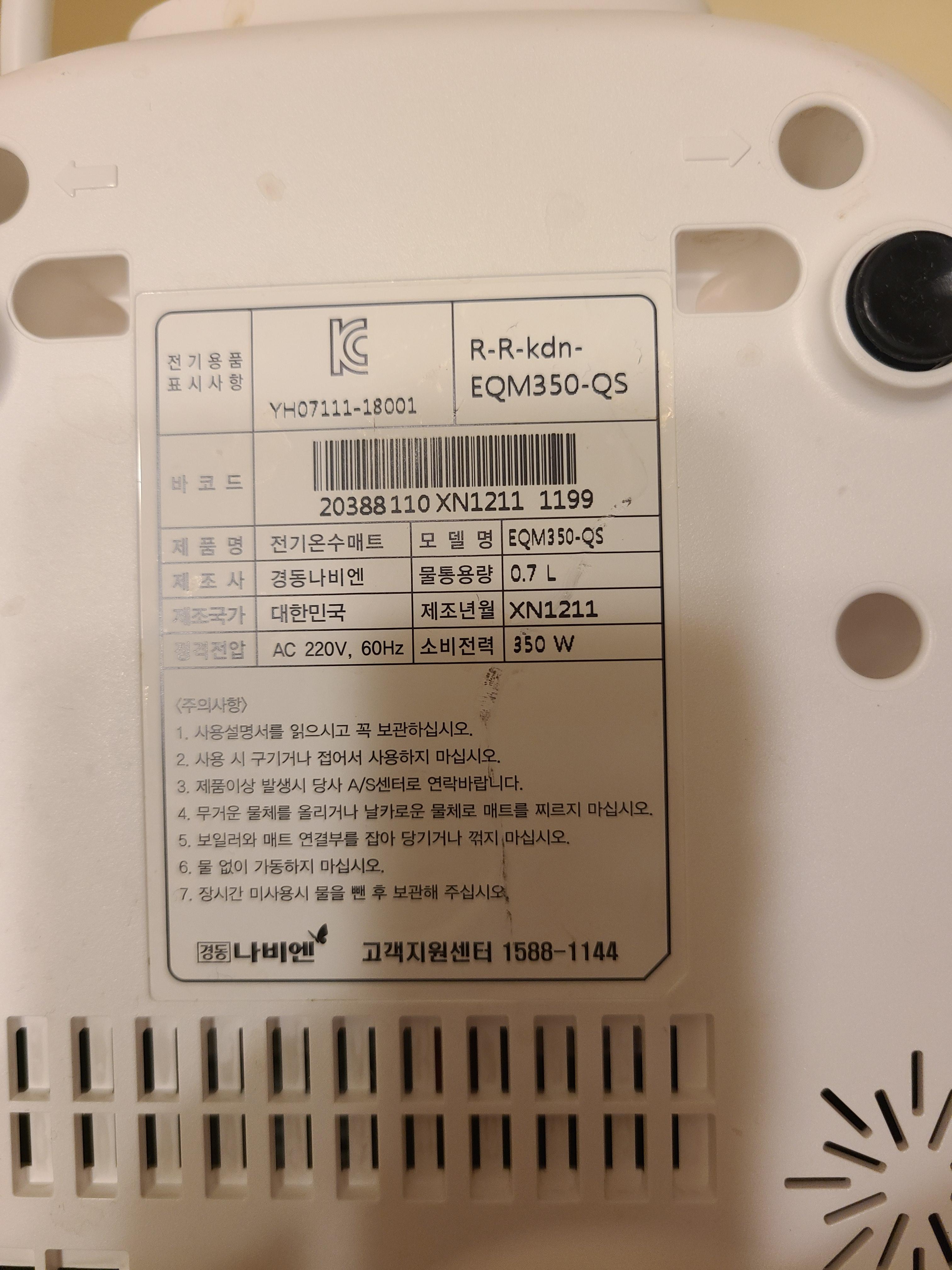 집 안방에서 사용하는 경동나비엔 온수매트에서