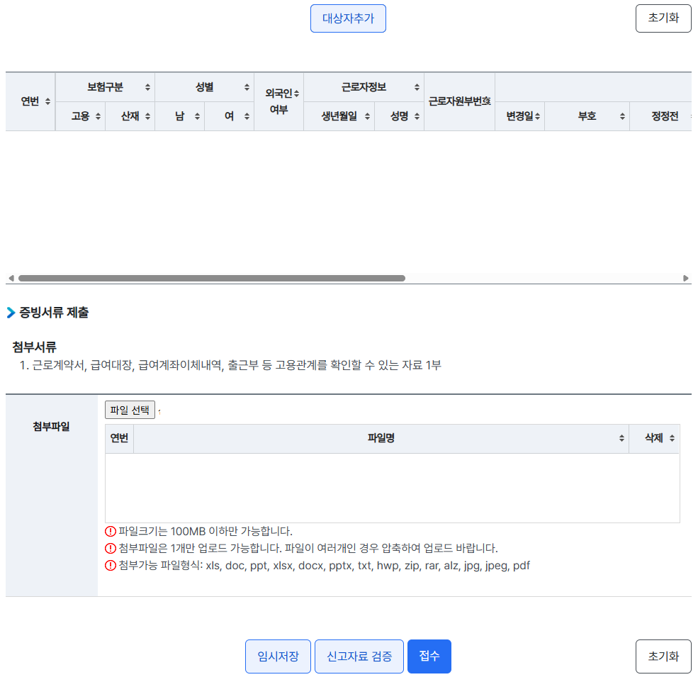 5. 대상자 추가 > 신고자료 검증 > 접수