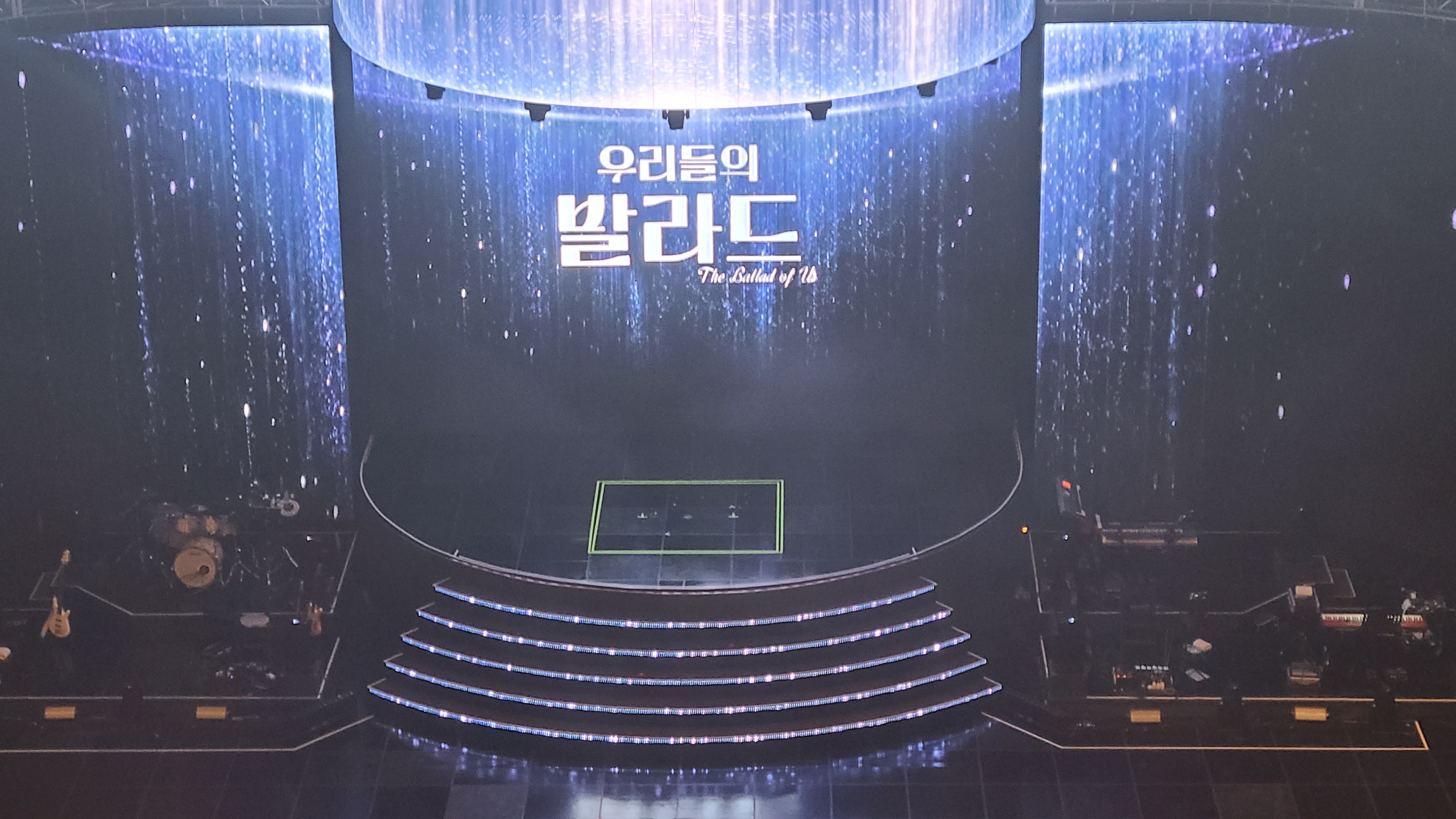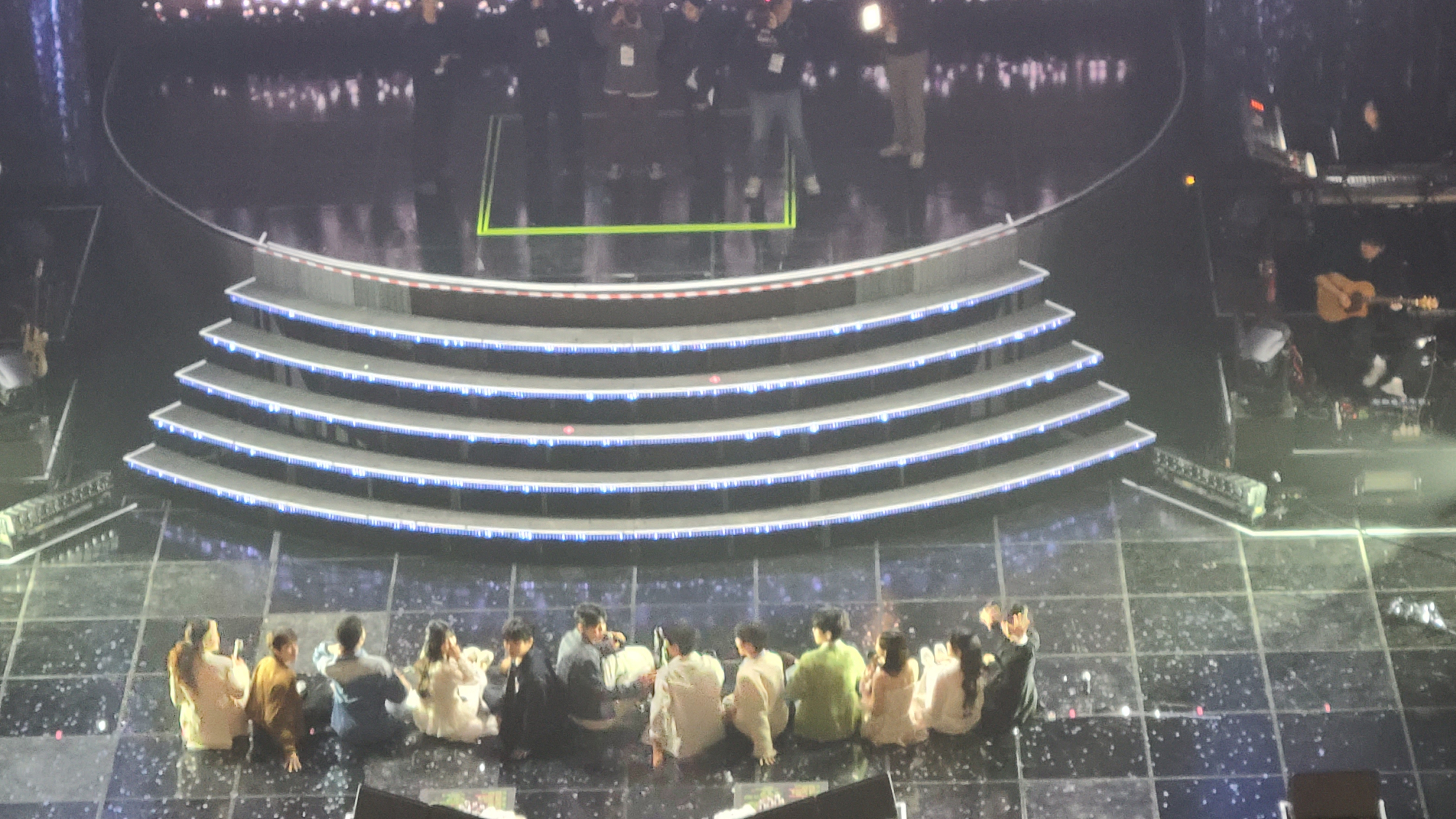 가수들은 무대 바로 앞이나, 계단 또는 계단뒤 네모 그려진 곳에서