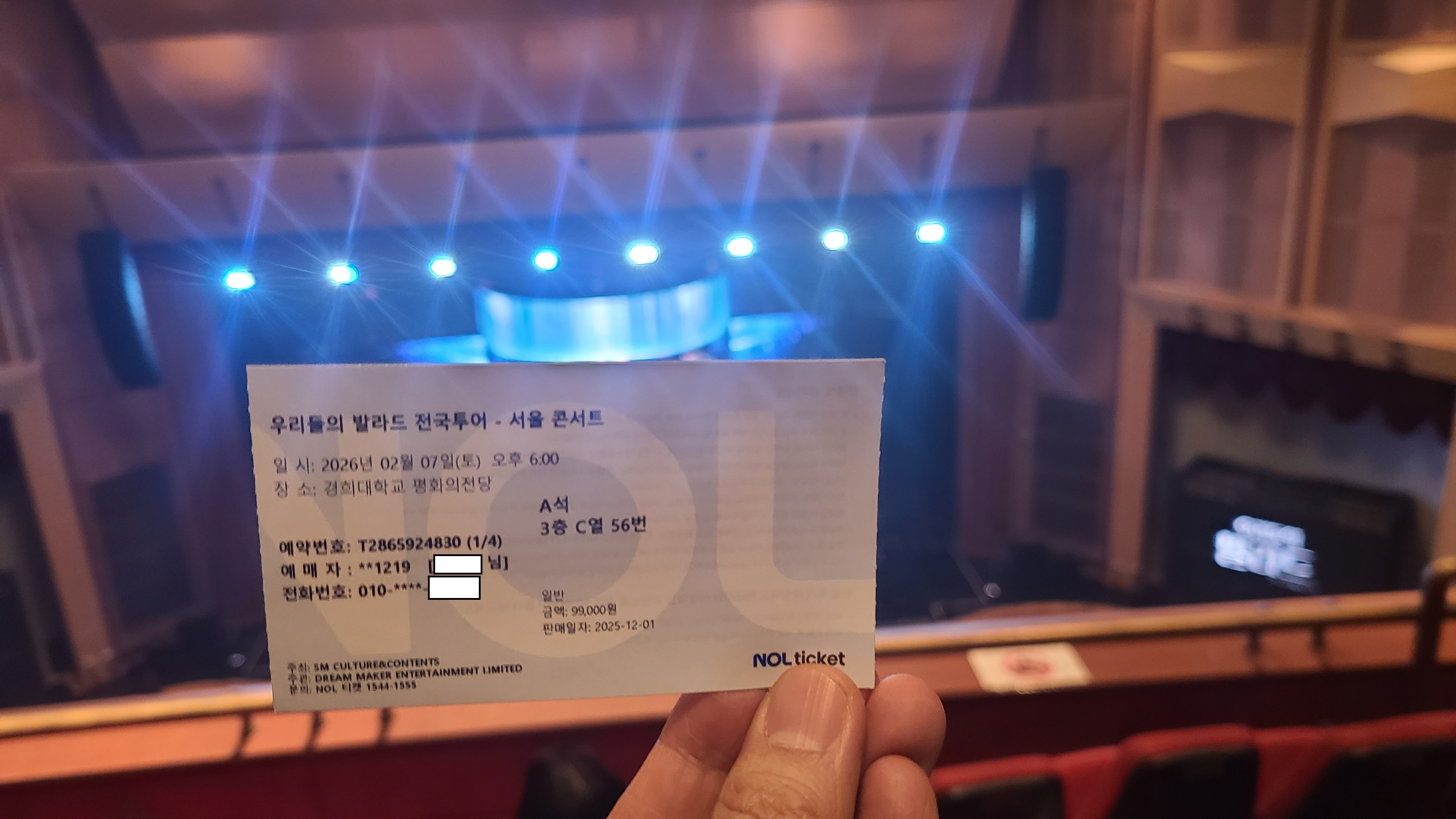 표 예매 경쟁이 치열했던지 3층의 앞에서 다섯 번째 줄 이네요.